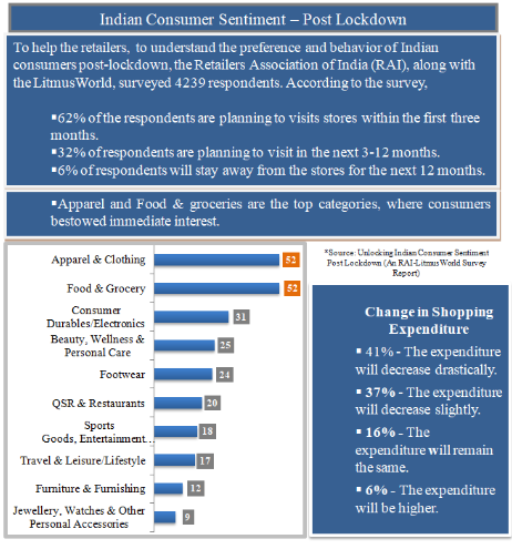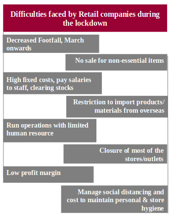 With the worldwide outbreak of the COVID-19, the entire scenario gets changed. During early March, the COVID cases started to rise in India. To fight against the increasing numbers, the Government of India imposed a nationwide lockdown in late March’20, which continued till May’20. Except for essential foods, groceries, and medical products stores, all other sorts of stores (stand-alone or in a shopping mall) of apparel, electronics, hardware, mobiles, furniture, etc. were completely closed for almost two months for the lockdown, which severely affects the retail market. During that time, most of the non-food/food retailers report around 80%-100% drop in sales. Even retailers of essential products experienced a loss, as they were unable to sell non-essential products that could give them a high-profit margin.